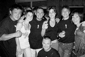 時は経ち、いよいよSAYONARAパーティーがやってきた。ここではなぜかカラオケが定番らしい。野本先輩のハイテク携帯電話と愛媛の親切な道場生の方の書き込みにより、私達は新極真の歌詞をゲットした。パーティーではやはりヨーデルの声もかかったが、野本先輩はそこで空手バカ一代を熱唱した。山上の夜空に響く空手バカ一代は、陽気なスペイン人達を魅了した。その後逃げ切れず私まで歌う羽目になり、そこでも野本大先輩は新極真の歌を一緒に歌ってくれた。別室に移りカラオケ大会では優勝商品をかけて大いに盛り上がる。隅でひっそり息を潜めていた二人の日本人はあえなく真ん中の席へ招待され、歌にダンスに度々駆り出された。照明を落とした会場で盛り上がるカラオケ大会中、ただ一人空手家らしく黙想をするN本先輩はフラッシュの嵐にも動じずし、船を漕ぎ続けていた。
