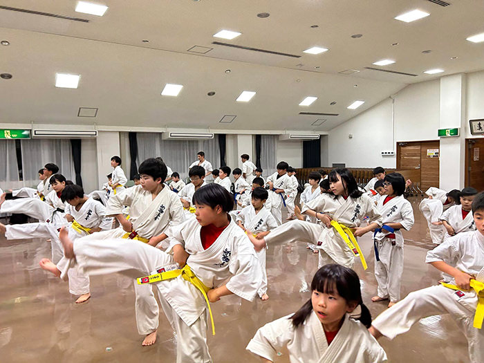![]() 「新極真会ファイト」の掛け声で稽古が始まります! |