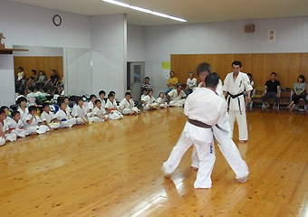 今回、三好師範には受審の機会を与えて頂き、また昇段をお許し下さりありがとうございます。ここまで導いて頂き、また仕事上ほとんど道場に出る事ができない私に色んな面で配慮して頂き本当に感謝いたしております。そして、今日まで宿毛支部を支え守って来てくださっている山口先輩には今回の昇段への後押し、道筋を付けて頂きありがとございます。そして10人組手の相手をしてくれた中村支部、大方支部、佐賀支部、宿毛支部道場生の皆さん、また10人目の相手をしてくれた筒井さん、そして大きな声援を送ってくれた少年部及び一般の皆さん本当にありがとうございました。